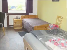 t Ecksofa, einem Sessel, Tisch, Stubenschrank, LED-Fernseher mit SAT-Empfang. Im Wohnzimmer ist eine runde Essecke mit Stühlen. In der Wohnung ist: EinFlur,eineStube,einSchlafzimmer mit zwei Einzelbetten. Bei Bedarf ist es möglich die Betten zusammenzustellen. Das Schlaf- und Wohnzimmer ist durch einen, gemauerten Rundbogen, mit einem Vorhang, voneinander getrennt.Das Wohnzimmer hat ein Sofa, einen Sessel, Tisch, Stubenschrank, LED-Fernseher mit SAT-Empfang, und Radio mit CD. Im Wohnzimmer ist ein Esstisch mit Stühlen.Weiter gibt es:Eine Küche und ein Duschbad mit WC.Die Ausstattung:E-Herd mit Backofen, Kühlschrank mit Gefrierfach, Mikrowelle, Kaffeemaschine, Wasserkocher und Toaster.Bettwäsche und Handtücher wird kostenlos zur Verfügung gestellt. Die Preise der Wohnungen gelten bis zwei Personen.Jede weitere Person wird mit 10,00 € pro Nacht berechnet.Wir freuen uns auf Ihren Besuch.